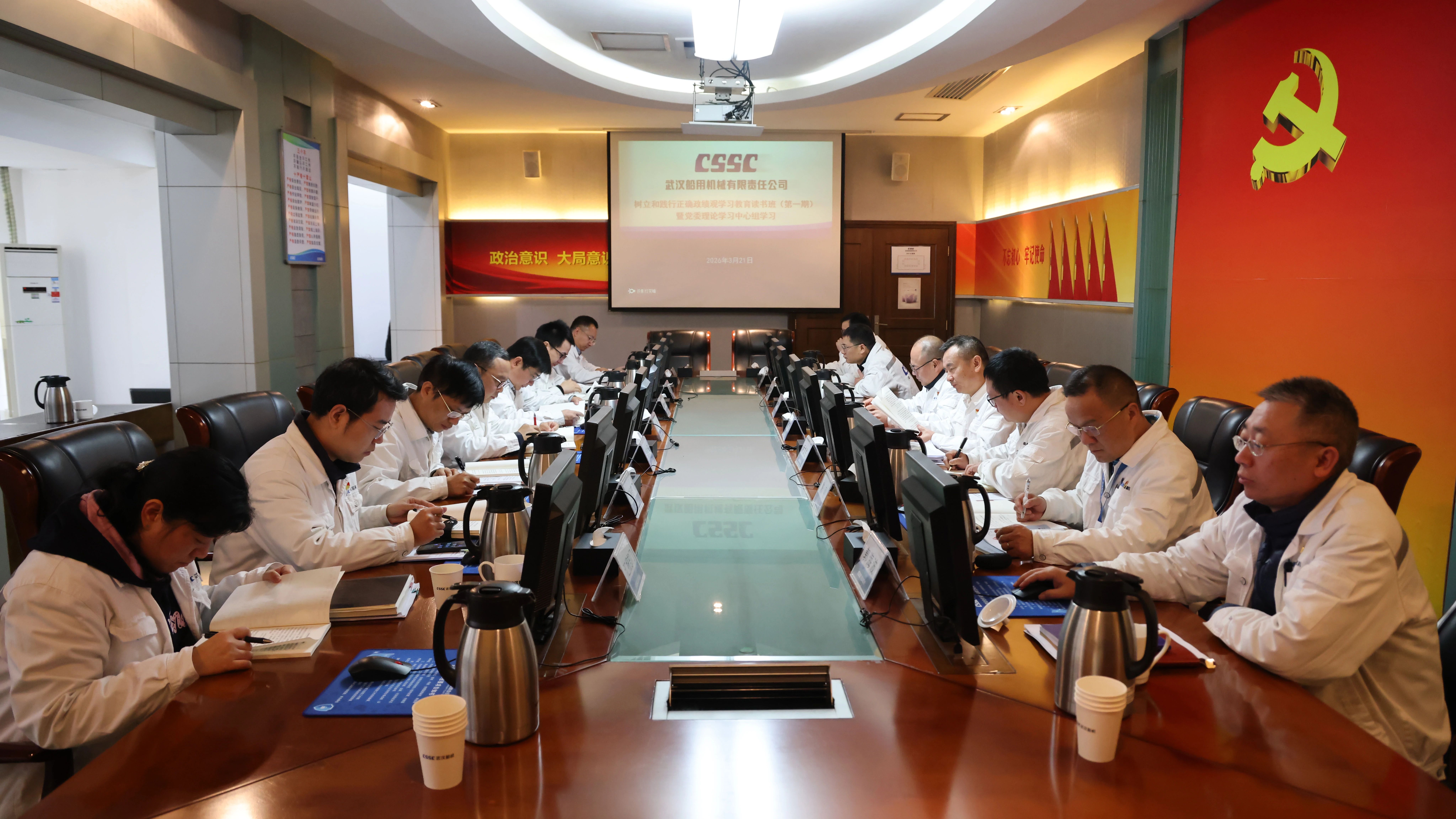 3月21日,中船武汉船机党委开展树立和践行正确政绩观学习教育读书班(第一期)暨党委理论学习中心组学习会议。公司党委理论学习中心组成员参加学习研讨,总经理助理、学习教育工作专班成员列席,公司党委副书记、总经理程立兵主持读书班并领学。