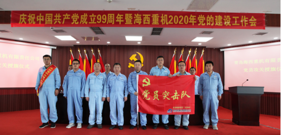 武汉船机海西重机党委对党员攻关小组进行现场授旗,号召全体党员以优良的工作作风,敢于啃硬骨头,越是艰险越向前的精神,主动推进党员攻关项目开展,全力确保项目交付目标如期完成。
