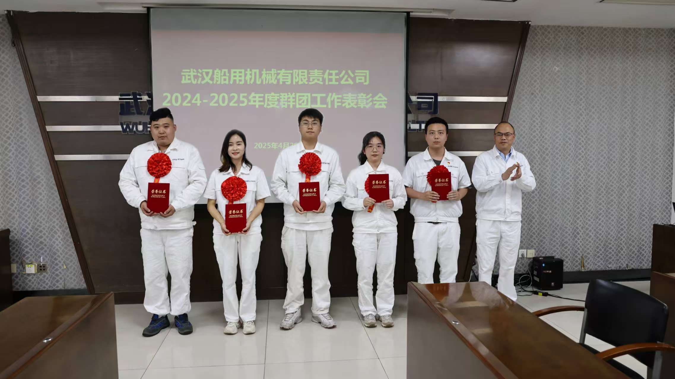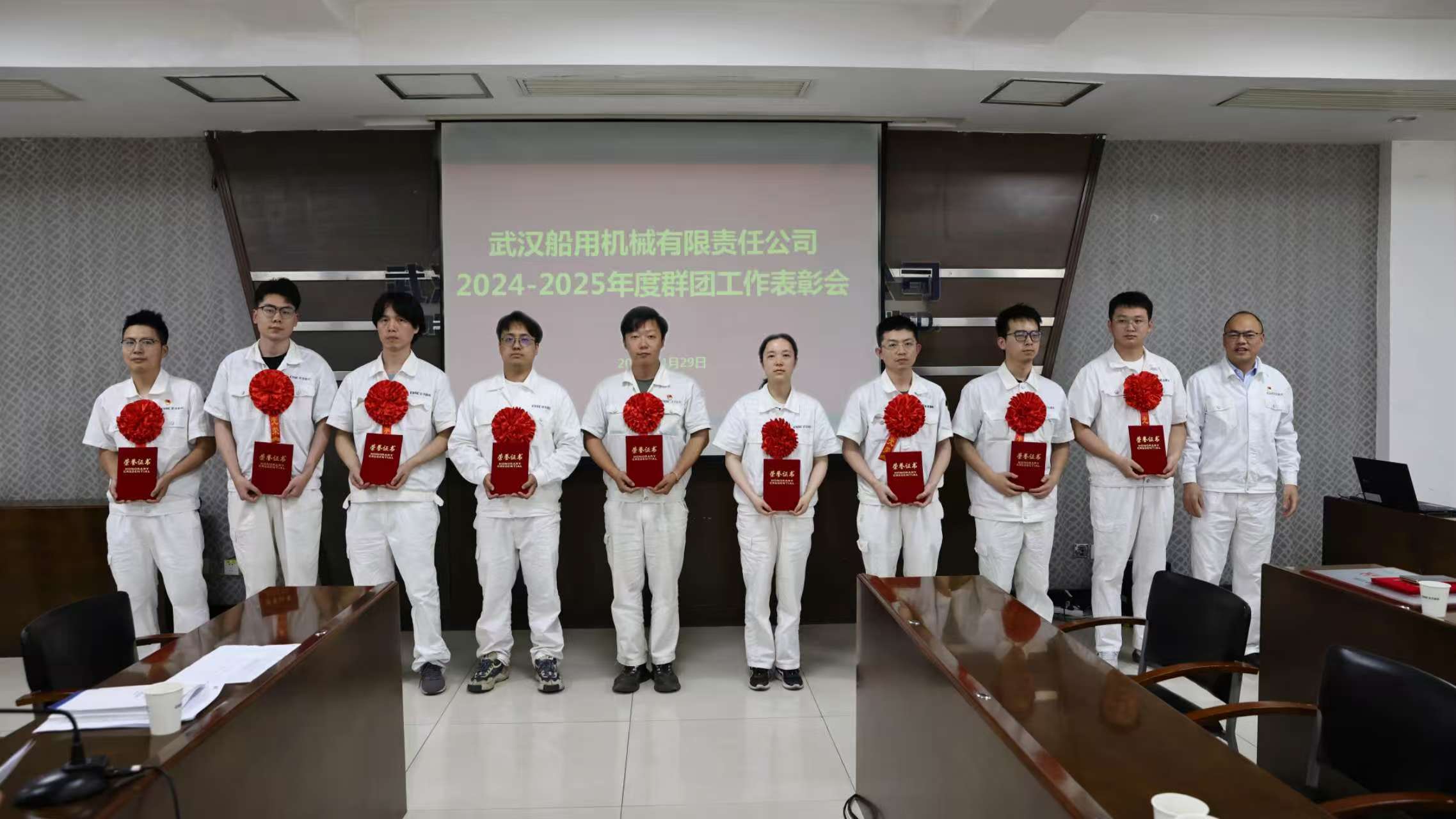 4月29日,中船集团武汉船机召开2024-2025年度群团工作表彰会,传达学习习近平总书记在庆祝中华全国总工会成立100周年暨全国劳动模范和先进工作者表彰大会的讲话精神,对公司工会、共青团先进集体和个人代表进行表彰。公司党委委员、总会计师、工会主席陈世龙出席会议。