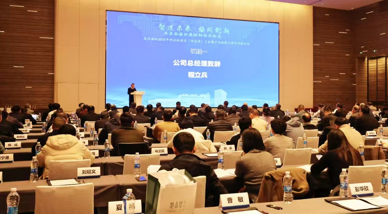 11月21日,中船武汉船机举办以“智造未来、协同创新,共筑船舶供应链韧性新格局”为主题的2025年供应链建设(供应商)大会暨产业链能力提升科技论坛,来自90多家供应商的180多名代表参加会议。公司党委副书记、总经理程立兵,党委委员、副总经理孙凯出席会议。